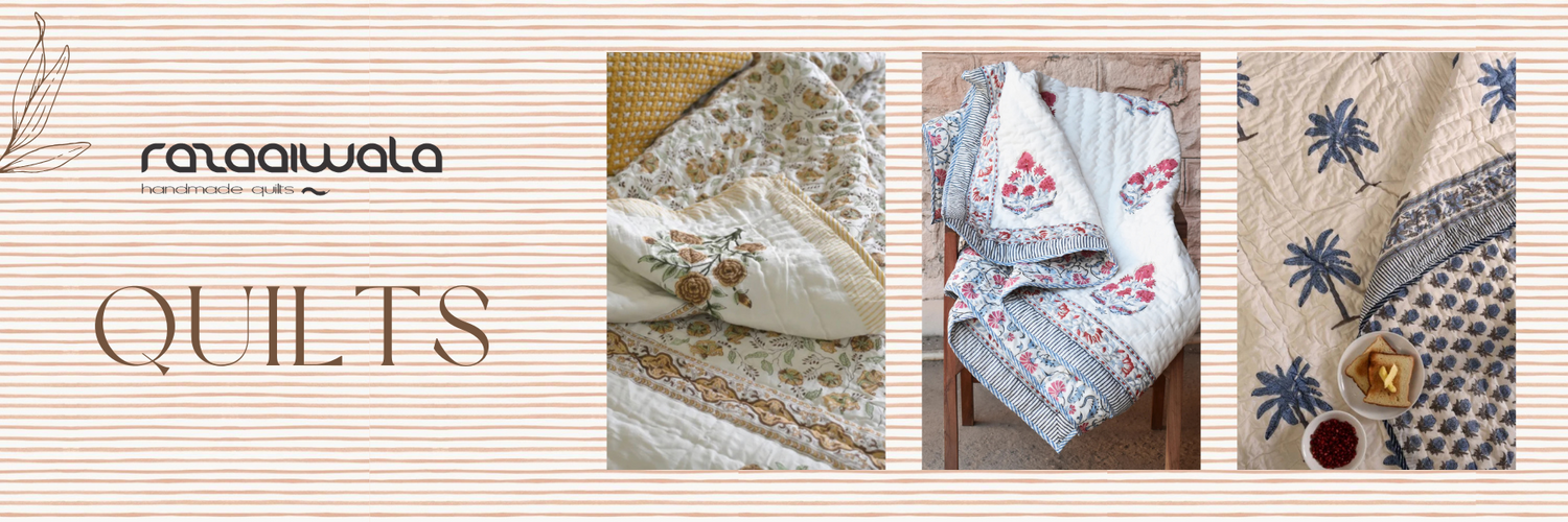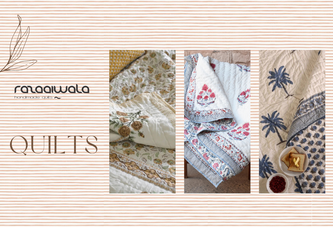 Exclusively handweaved jute rugs for you. The house of Razaaiwala brings you the best jute rugs with the most authentic design and patterns. Entirely handcrafted carpet rugs for living room made up of naturally cozy materials, the Jute Wool Rugs grounds any room with rich texture. Designed for resiliency in high-traffic areas and to refresh your space with sustainable fibres and earthy textures. Its authentic patterns are inspired by traditional Killim designs that adds to the rustic feel to your interiors. The airy and light weight, handmade variety of cotton quilts is beautiful addition to any bedroom with its graceful Eastern motifs.